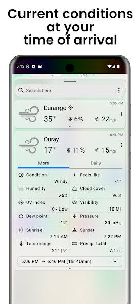 ClimateCruise ได้รับการคาดการณ์สำหรับทุกจุดระหว่างคุณและปลายทางของคุณ รู้ว่าจะคาดหวังอะไรในการเดินทางบนท้องถนนครั้งต่อไปของคุณล่วงหน้า 7 วัน
